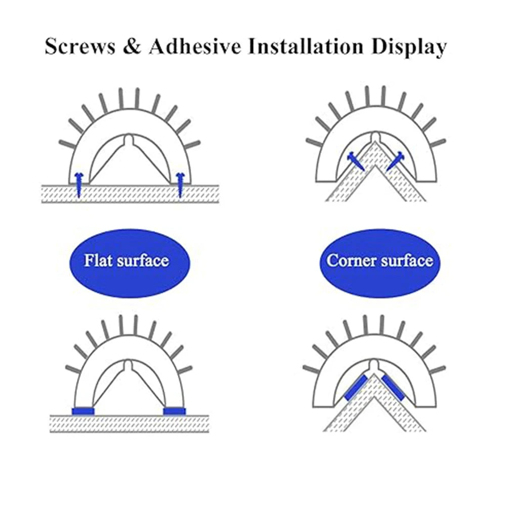 Mounts easily on wall corners, furniture edges, or cabinet corners. Strong adhesive backing means no drilling required - perfect for renters! Remove and reposition anytime.